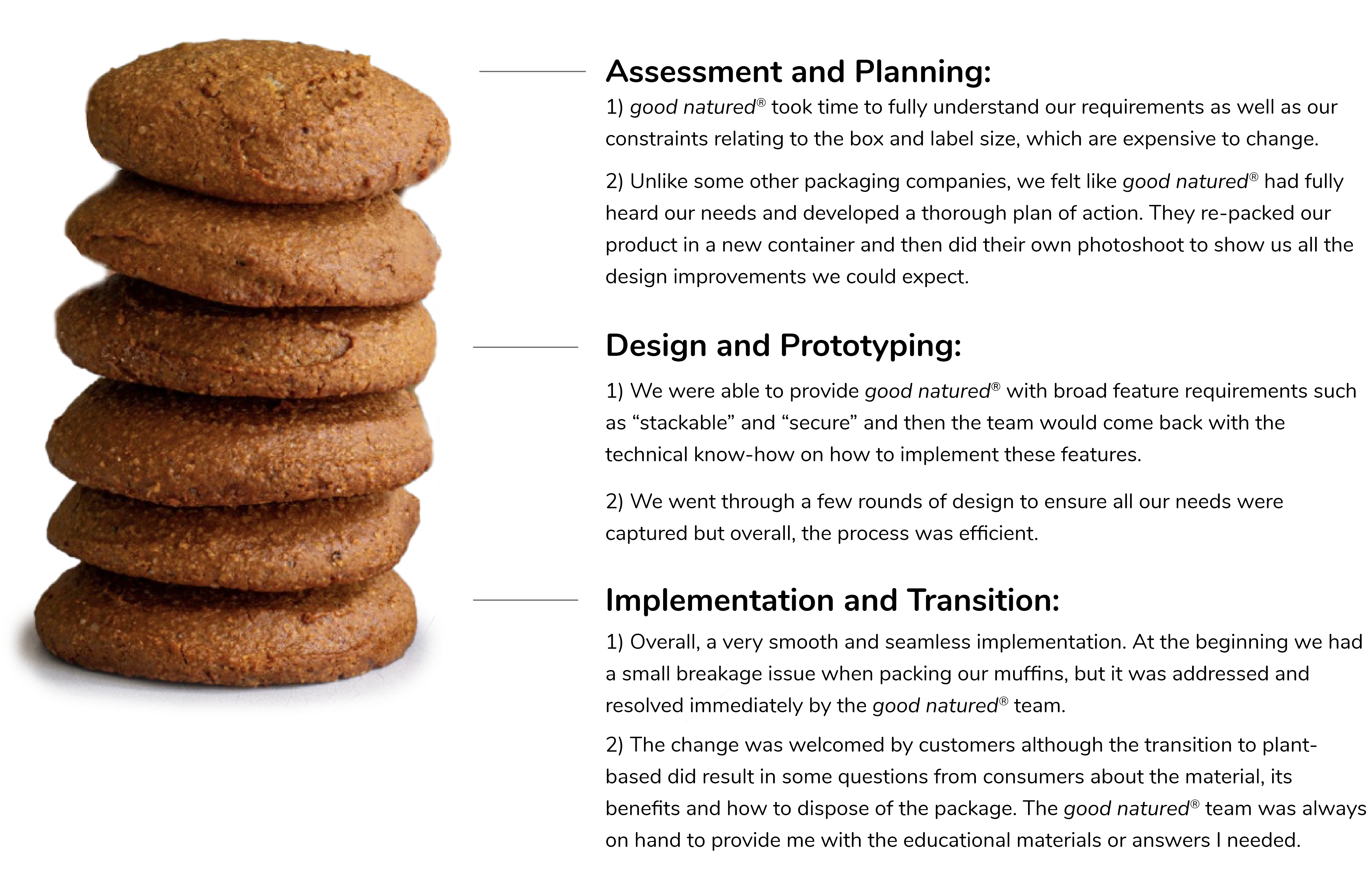 “We couldn’t ask for a better team to work with. Good Natured Products has our back. They were transparent, reliable, and patient throughout the entire process. Their customer care is exceptional, and they went above and beyond in providing support and materials to help us with consumer education. We wholeheartedly recommend Good Natured Products to anyone looking for sustainable packaging solutions.”